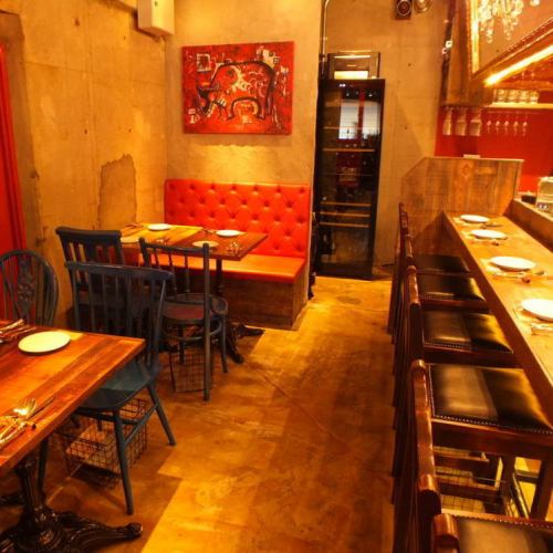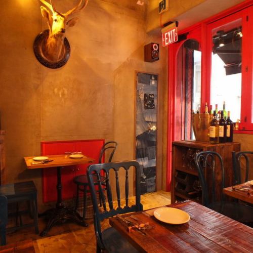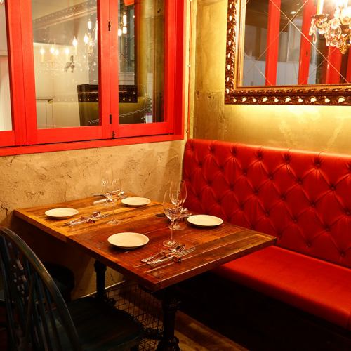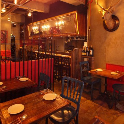 テーブル席は最大4名様まで。ご友人とのお食事や、女子会、誕生日・記念日のお祝いなど少人数でのパーティに最適です。店内のアンティーク調のお洒落な家具がパーティーを華やかに。お席も広々としておりますので、ゆったり寛ぎながらお食事をお楽しみいただけます。お席のみのご予約も可能。お気軽にお電話ください。