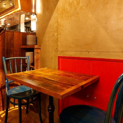 [2名様用テーブル席]2名様用テーブル席はデートやお仕事終わりの同僚との一杯に最適。程良い広さですので、お食事とともに会話もお楽しみいただけるお席です。ゆっくりと過ごされたい時におすすめです。お席のみのご予約も承っております。お気軽にご連絡ください。