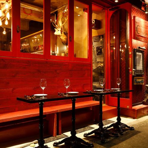 [テラス席]人気のテラス席は2名様までご利用いただけます。ディナーはもちろん、ランチ利用にも最適。カップルにおすすめのお席です。開放的で心地よいテラス席で絶品フレンチをお楽しみください。大変人気のお席ですのでご予約はお早めに。