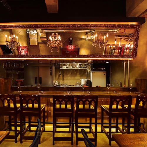 カウンター席は全6席ご用意。デートや記念日などカップルでのご利用や、お仕事帰りの一杯におすすめのお席です。